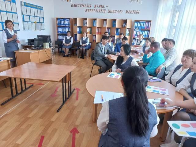 Бастауыш сыныптар әдістемелік бірлестігінің жетекшісі Жуманова Сауле Есеновна сабақтарда қолданып жүрген «Суреттер бойынша амандасу» , «Саусақ моторикасын жетілдіру, дамыту» жаттығуларының түрлері ,«Wortwall» интерактивті тапсырма құру әдісі, «Микс» жаттығулары, «Бэкроним», «Шеринг», «Бір минуттық әңгіме» , «Сұрақ ілмегі» тәсілдері мен «Шыбындарды жою» ойыны туралы баяндап, шәкірттердің ой-өрісінің кеңеюі мен көзқарасының қалыптасуына, білімнің нәтижелі болуына жаңа әдіс-тәсілдерің маңызы зор екенін айтты .