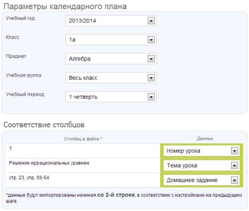 В процессе проверки данных система сообщит о существующих на момент импорта данных в ячейках календарного планирования. Система может как заменить существующие тему урока и домашнее задание, так и оставить изначально установленные значения. Относительно каждой строчки календарного планирования можно выбрать действие: импортировать или не импортировать.