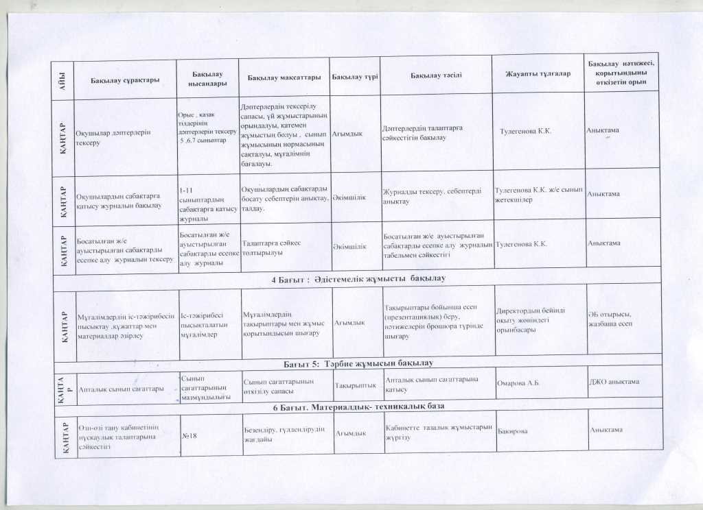«Ғ.Әбдірахманұлы атындағы Қима орта мектебі» КММ-нің мектепішілік бақылау жоспары 2019-2020 оқу жылы қантар айы